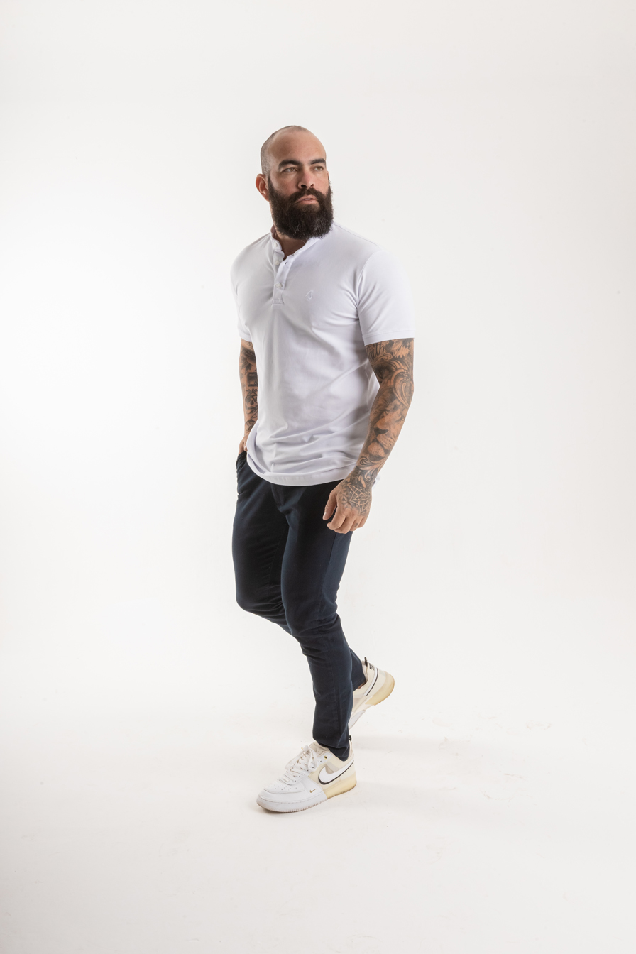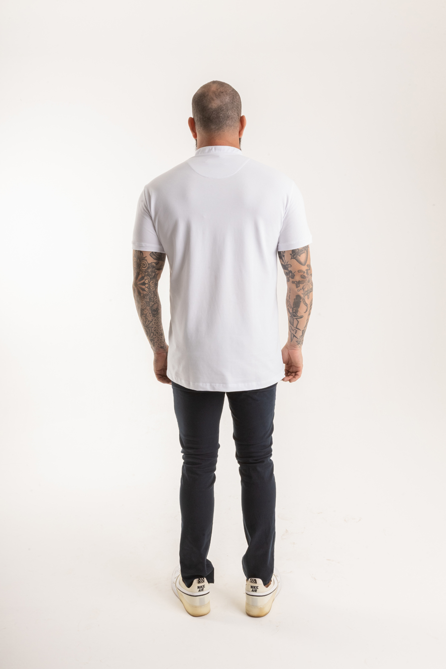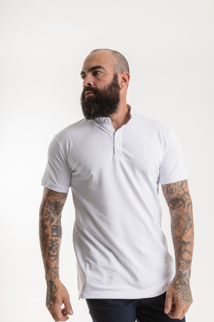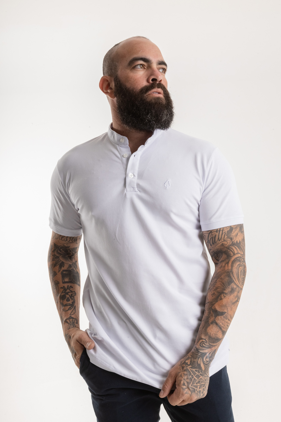 O design atemporal com gola Henley e 3 botões garante versatilidade, podendo ser usada tanto em produções casuais quanto em combinações mais refinadas. O bordado discreto da marca OAK no peito, em tom cinza, reforça a identidade minimalista e autêntica da peça.
